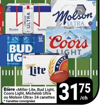 Bière Miller Lite, Bud Light, Coors Light, Michelob Ultra ou Molson Ultra 24 discount at Pasquier