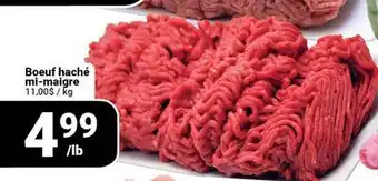 This promotion is available in various stores, view all products to get the cheapest Boeuf haché mi-maigre. If you'd like to find out whether this product has a bigger discount in another store, check the category 'Grocery'. You may also find these offers interesting: BOEUF HACHÉ MI-MAIGRE, BŒUF HACHÉ MI-MAIGRE & BOEUF HACHÉ MI-MAIGRE | MEDIUM GROUND BEEF.