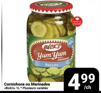 This promotion is available in various stores, view all products to get the cheapest Cornichons ou Marinades. If you'd like to find out whether this product has a bigger discount in another store, check the category 'Grocery'. You may also find these offers interesting: Cornichons Selection, CORNICHONS SANS NOM & CORNICHONS STRUB'S | STRUB'S PICKLES.