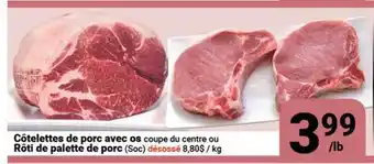 Côtelettes de porc avec os coupe du centre ou Rôti de palette de porc (Soc) désossé offers and online promotions