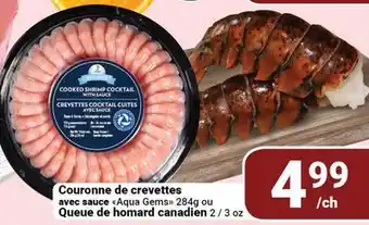 Couronne de crevettes avec sauce Aqua Gems 284g ou 499 /ch Queue de homard canadien 2/3 oz
