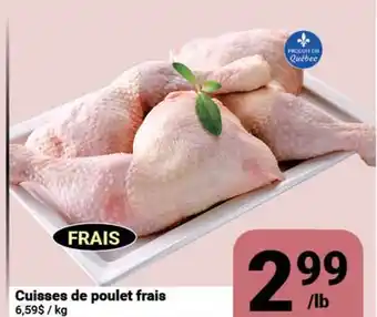 Many people prepare their shopping list in advance, using the latest deals and promotions. Flyerdeals.ca is among the first to share next week’s promotions, so you know whether to wait before making a purchase or buy right away at the best price. Our team updates all Cuisses de poulet frais promotions quickly, allowing you to plan with both this week’s and next week’s offers. Some promotions are only available during specific dates or online.Frequently asked questions about Cuisses de poulet frais