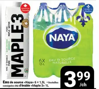 Eau de source Naya 6 x 1,5L *Bouteilles consignées ou d'érable Maple 3 1L promotion at Pasquier