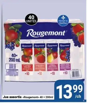 This promotion is available in various stores, view all products to get the cheapest Jus assortis Rougemont. If you'd like to find out whether this product has a bigger discount in another store, check the category 'Grocery'. You may also find these offers interesting: ROUGEMONT FRUIT JUICE, ROUGEMONT Apple Juice & Baklavas assortis.