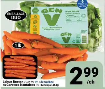 Laitue Boston Gen V Pr. : du Québec ou Carottes Nantaises Pr. : Mexique 454g