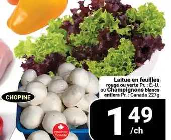 Laitue en feuilles rouge ou verte Pr. : E.-U. ou Champignons blancs entiers Pr. : Canada offers and online promotions