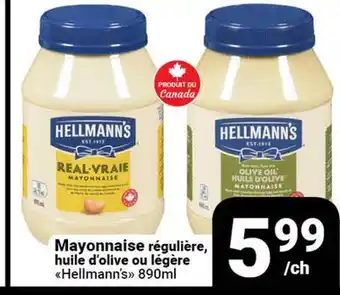 Mayonnaise régulière, huile d'olive ou légère Hellmann's
