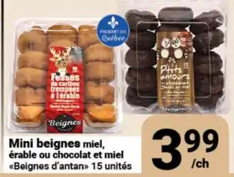 Mini beignes miel, érable ou chocolat et miel Beignes d'antan 15 unités offer at Pasquier