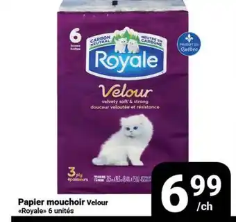 This promotion is available in various stores, view all products to get the cheapest Papier mouchoir Velour Royale. If you'd like to find out whether this product has a bigger discount in another store, check the category 'Grocery'. You may also find these offers interesting: Royale Velour bathroom tissue, Royale Original or Velour Bathroom Tissue & PAPIER HYGIÉNIQUE VELOUR | BATHROOM TISSUE, 15 ROULEAUX DOUBLES.