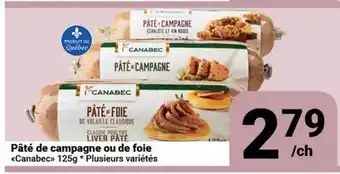 This promotion is available in various stores, view all products to get the cheapest Pâté de campagne ou de foie. If you'd like to find out whether this product has a bigger discount in another store, check the category 'Grocery'. You may also find these offers interesting: Pâté de campagne ou de foie Canabec, pâté de campagne ou de foie Plaisirs Gastronomiques & PÂTÉ DE FOIE OU DE CAMPAGNE PREMIÈRE MOISSON.