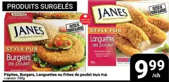 This promotion is available in various stores, view all products to get the cheapest Pépites, Burgers, Languettes ou Frites de poulet Style Pub Janes. If you'd like to find out whether this product has a bigger discount in another store, check the category 'Grocery'. You may also find these offers interesting: JANES PUB STYLE BREADED CHICKEN PORTIONS | PORTIONS DE POULET PANÉES STYLE PUB JANES, Janes Pub Style Chicken & Janes Pub Style Chicken Nuggets, Strips, Burgers, Fries or Popcorn Chicken.