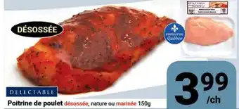 This promotion is available in various stores, view all products to get the cheapest Poitrine de poulet désossée. If you'd like to find out whether this product has a bigger discount in another store, check the category 'Grocery'. You may also find these offers interesting: Poitrine de poulet désossée et parée, Poitrine de poulet & FILETS DE POITRINE DE POULET.