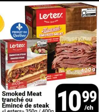 The Smoked Meat tranché ou Emincé de steak Lesters is available this week at Pasquier with a valuable discount. On this page, you will find details about the current promotional price, the promotion terms, and any special discounts. You can also explore other related deals and promotions for Smoked Meat tranché ou Emincé de steak Lesters to make sure you get the best value.