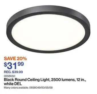 Black Round Ceiling Light, 2500 lumens, 12 in., white DEL offer at Patrick Morin