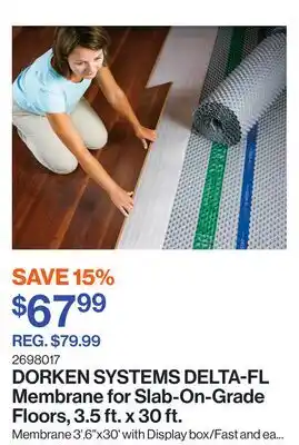 The DELTA-FL Membrane for Slab-On-Grade Floors, 3.5 ft. x 30 ft is available this week at Patrick Morin with a valuable discount. On this page, you will find details about the current promotional price, the promotion terms, and any special discounts. You can also explore other related deals and promotions for DELTA-FL Membrane for Slab-On-Grade Floors, 3.5 ft. x 30 ft to make sure you get the best value.