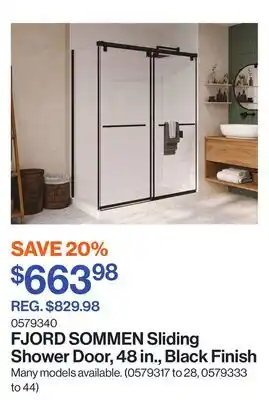 This FJORD SOMMEN Sliding Shower Door, 48 in., Black Finish is currently on sale at Patrick Morin. All details regarding the current price, offer conditions, and validity period can be found on this page. You can also explore other similar deals and promotions related to FJORD SOMMEN Sliding Shower Door, 48 in., Black Finish to make the most cost-effective choice.