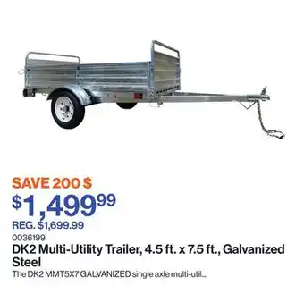 The Multi-Utility Trailer, 4.5 ft. x 7.5 ft., Galvanized Steel is available this week at Patrick Morin with a valuable discount. On this page, you will find details about the current promotional price, the promotion terms, and any special discounts. You can also explore other related deals and promotions for Multi-Utility Trailer, 4.5 ft. x 7.5 ft., Galvanized Steel to make sure you get the best value.