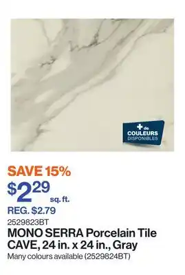 This Porcelain Tile CAVE, 24 in. x 24 in., Gray promotion is valid in week 02. If it has expired, you can still view other available offers. Following the product category will keep you updated whenever Porcelain Tile CAVE, 24 in. x 24 in., Gray is on sale again at Patrick Morin as part of a new promotion or discount.