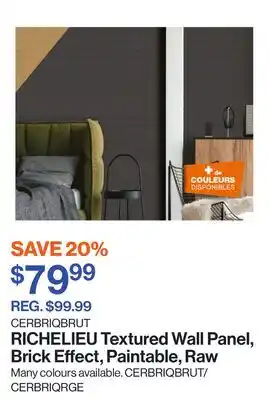 This Textured Wall Panel, Brick Effect, Paintable, Raw is currently on sale at Patrick Morin. All details regarding the current price, offer conditions, and validity period can be found on this page. You can also explore other similar deals and promotions related to Textured Wall Panel, Brick Effect, Paintable, Raw to make the most cost-effective choice.