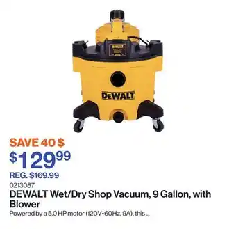This promotion is available in various stores, view all products to get the cheapest Wet/Dry Shop Vacuum, 9 Gallon, with Blower. If you'd like to find out whether this product has a bigger discount in another store, check the category 'Kitchen and Bathroom'. You may also find these offers interesting: Wet/dry vacuum, Wet/Dry Vacuum & Dewalt Wet/dry vacuum.