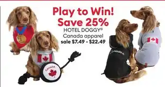 Now on sale at Petsmart: Save 25% HOTEL DOGGY Canada apparel ✅ Valid from 2-02 to 1-03.