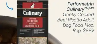 Petvalu offers a wide collection of products, besides the Performatrin CulinaryTM/MC. Keep an eye on the weekly Petvalu flyer to find the best offers and promotions. Besides Performatrin CulinaryTM/MC, you can also find the following offers: Performatrin CulinaryTM/MC Gently Cooked Turkey Dinner 14oz, Performatrin CulinaryTM/MC Raw Beef Dinner Adult Dog Food & Performatrin CulinaryTM/MC Raw Chicken Dinner Adult Dog Food.