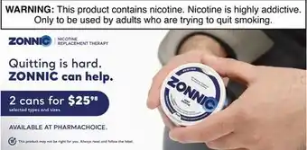 PharmaChoice offers a wide collection of products, besides the ZONNIC. Keep an eye on the weekly PharmaChoice flyer to find the best offers and promotions. Besides ZONNIC, you can also find the following offers: Zonnic 4mg, ZONNIC & Zonnic Nicotine Pouches.
