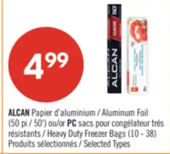 ALCAN Aluminum Foil (50') or PC Heavy Duty Freezer Bags (10 - 38) offer at Pharmaprix