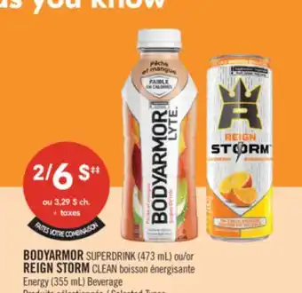 BODYARMOR SUPERDRINK (473 mL) or REIGN STORM CLEAN Energy (355 mL) Beverage promotion at Pharmaprix