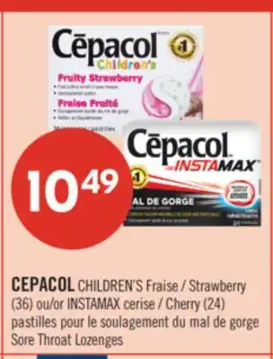 CEPACOL CHILDREN'S Strawberry (36) or INSTAMAX Cherry (24) Sore Throat Lozenges promotion at Pharmaprix