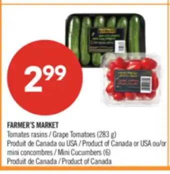 FARMER'S MARKET Grape Tomatoes (283 g) or Mini Cucumbers (6) offer at Pharmaprix