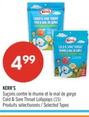 KERR'S Cold & Sore Throat Lollypops promotion at Pharmaprix