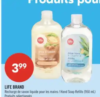 Current LIFE BRAND Hand Soap Refills deal at Pharmaprix from 17-01 until 22-01.