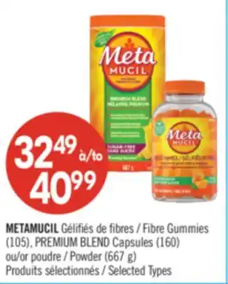 METAMUCIL FIBRE GUMMIES 105, PREMIUM BLEND CAPSULES 160 OR POWDER offer at Pharmaprix