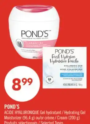 POND'S HYALURONIC ACID Hydrating Gel Moisturizer (96.4 g) or Cream (200 g) promotion at Pharmaprix