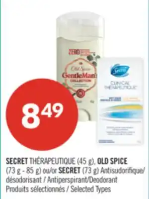 SECRET THÉRAPEUTIQUE (45 g), OLD SPICE (73 g - 85 g) or SECRET (73 g) Antiperspirant/Deodorant discount at Pharmaprix
