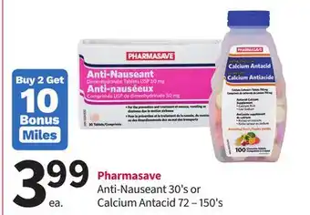 Pharmasave Anti-Nauseant 30's or Calcium Antacid 72 – 150's promotion at Pharmasave