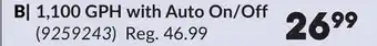 1,100 GPH with Auto On/Off 12V Bilge Pumps discount at Princess Auto