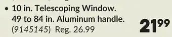 10 in. Telescoping Window. 49 to 84 in. Aluminum handle. Squeegees offer at Princess Auto