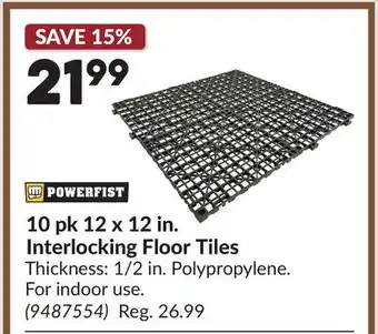 This 10 pk 12 x 12 in. Interlocking Floor Tiles is currently on sale at Princess Auto. All details regarding the current price, offer conditions, and validity period can be found on this page. You can also explore other similar deals and promotions related to 10 pk 12 x 12 in. Interlocking Floor Tiles to make the most cost-effective choice.