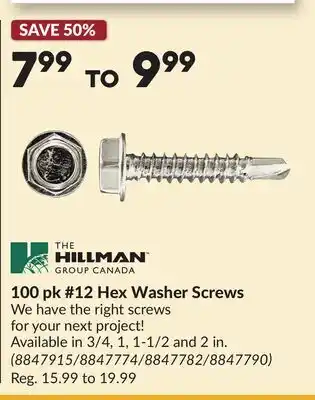 100 pk #12 Hex Washer Screws offer at Princess Auto