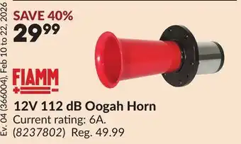 Now on sale at Princess Auto: 12V 112 dB Oogah Horn ✅ Valid from 10-02 to 22-02.