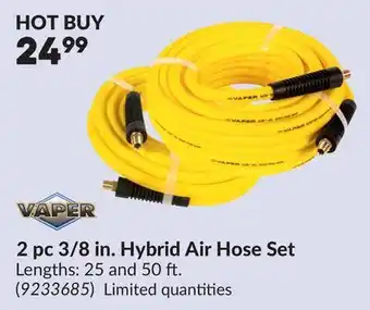 The 2 pc 3/8 in. Hybrid Air Hose Set is available this week at Princess Auto with a valuable discount. On this page, you will find details about the current promotional price, the promotion terms, and any special discounts. You can also explore other related deals and promotions for 2 pc 3/8 in. Hybrid Air Hose Set to make sure you get the best value.