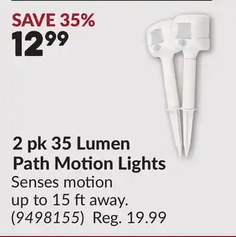 This promotion is available in various stores, view all products to get the cheapest 2 pk 35 Lumen Path Motion Lights. If you'd like to find out whether this product has a bigger discount in another store, check the category 'DIY'. You may also find these offers interesting: 5 pk 360° Magnetic Lights, 2 pk LED 350 Lumen Tactical Flashlights & Christmas Inflatable Lights, 24-in, 3-pk.