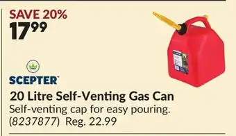 Many people prepare their shopping list in advance, using the latest deals and promotions. Flyerdeals.ca is among the first to share next week’s promotions, so you know whether to wait before making a purchase or buy right away at the best price. Our team updates all 20 Litre Self-Venting Gas Can promotions quickly, allowing you to plan with both this week’s and next week’s offers. Some promotions are only available during specific dates or online.Frequently asked questions about 20 Litre Self-Venting Gas Can