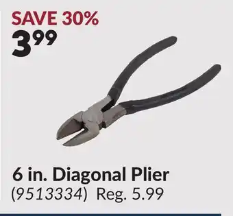 This promotion is available in various stores, view all products to get the cheapest 6 in. Diagonal Plier. If you'd like to find out whether this product has a bigger discount in another store, check the category 'DIY'. You may also find these offers interesting: Plier/Wrench Racks, 4-Piece Plier Set & Magnetic Plier Holders.