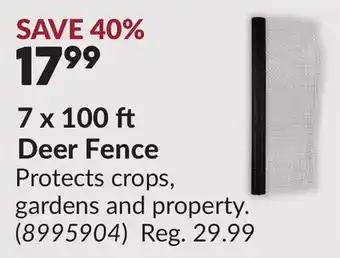 This 7 x 100 Deer Fence promotion is valid in week 51. If it has expired, you can still view other available offers. Following the product category will keep you updated whenever 7 x 100 Deer Fence is on sale again at Princess Auto as part of a new promotion or discount.