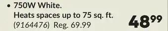 750W White. Heats spaces up to 75 sq. ft promotion at Princess Auto