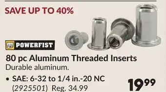 Now on sale at Princess Auto: 80 pc Aluminum Threaded Inserts SAE: 6-32 to 1/4 in.-20 NC ✅ Valid from 24-02 to 8-03.
