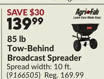 This promotion is available in various stores, view all products to get the cheapest 85 lb Tow-Behind Broadcast Spreader. If you'd like to find out whether this product has a bigger discount in another store, check the category 'DIY'. You may also find these offers interesting: 2 pk 2 in. x 20 10,000 lb Tow Strap Set, Hand Spreader for Salt and Abrasives & Trimax Razor Adjustable Tow Hitch.
